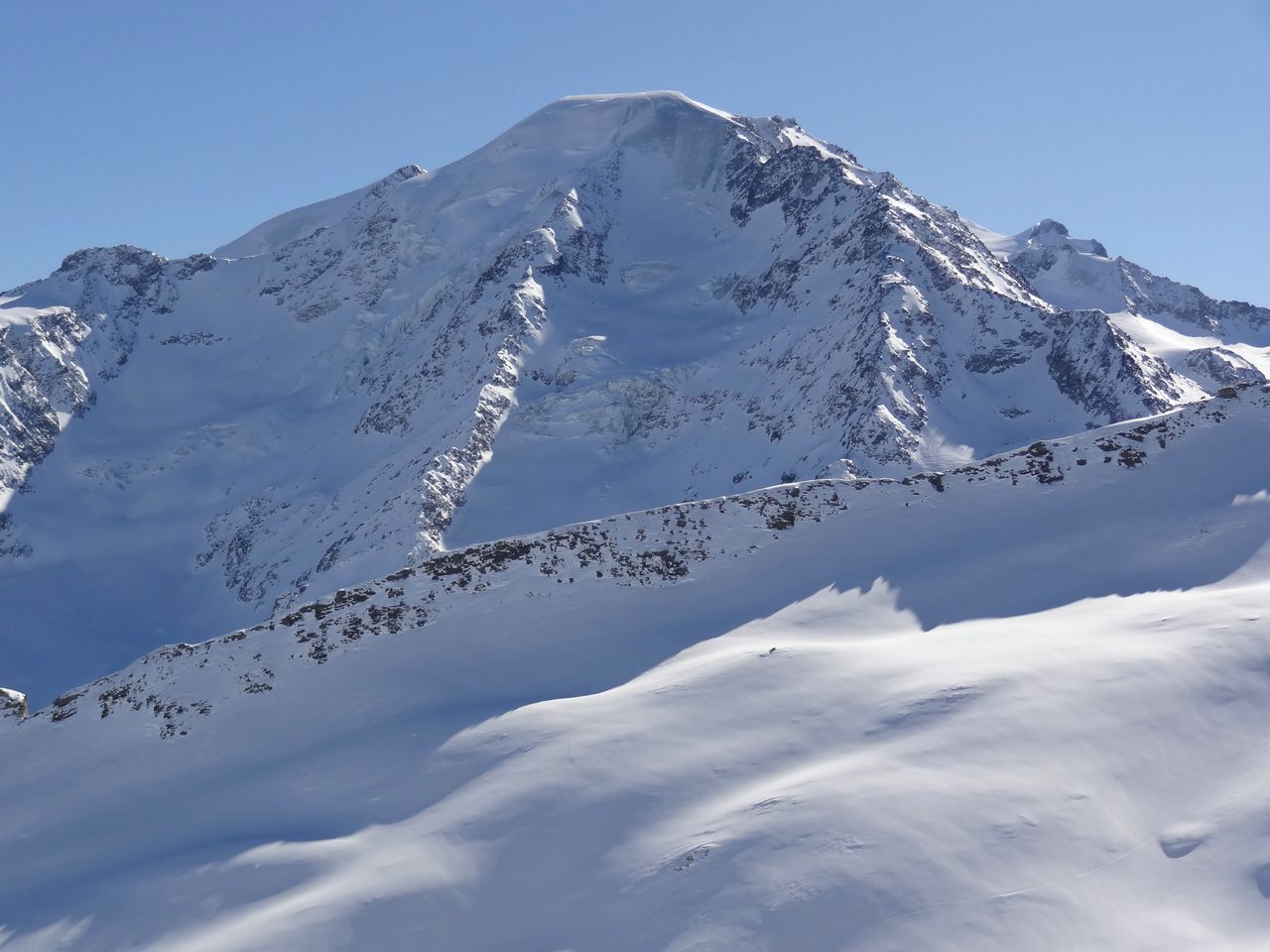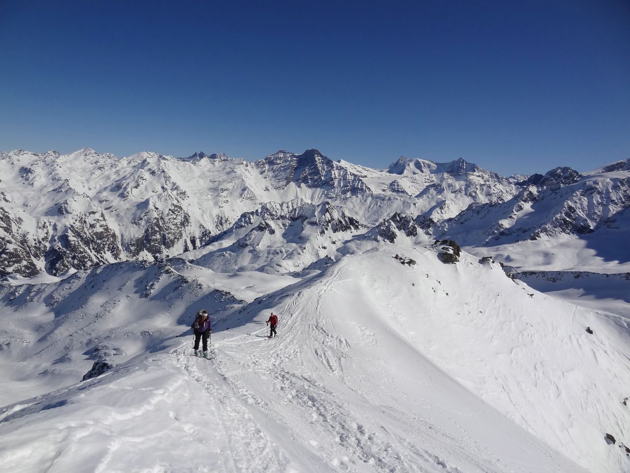 En voilà une belle sortie … Elles avaient la caisse, la motiv les filles aujourd’hui !! Corinne et Marine qui après la montée au Rogneux en Suisse, ont descendu le couloir Nord du Mont … avec une neige très bonne d’en haut jusqu’en bas ! Pas un nuage, pas de vent, une vue sur tout le massif du Mont Blanc, Le Vélan, Combin …. Bref un joli moment de paix et bonheur ! La course fut longue … mais l’allure menée a permis de monter les 1900m et surtout les redescendre … :), ceci dit les cuisses ont souffert ! Mais c’était bon de chez bon !!!! Merci pour le choco blanc 😉 ça c’est la classe ! Monter c’est bien et faisable mais descendre après cette montée … et sans tomber : c’est top et ça fait plaisir !