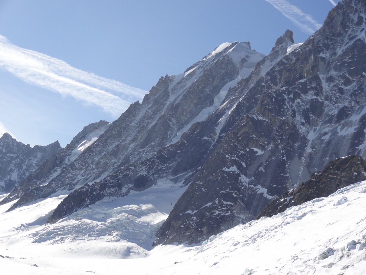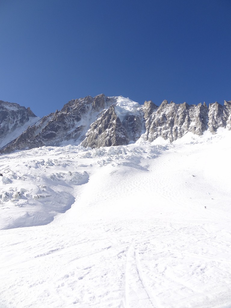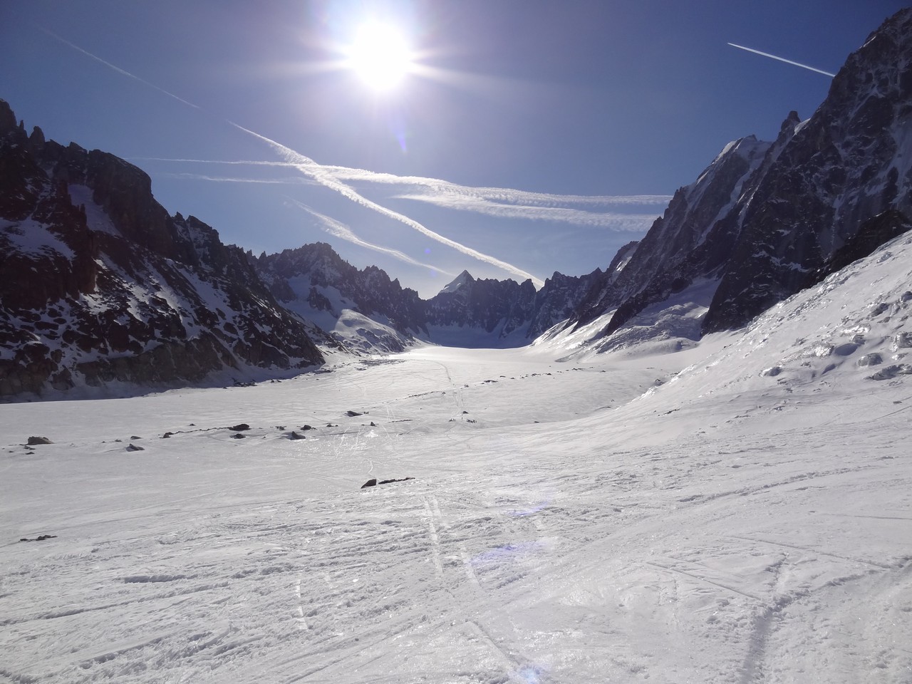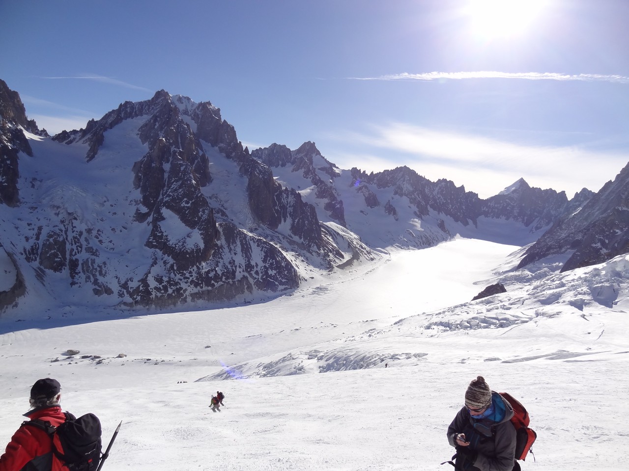 En bien voilà, un cursus de formation quasi terminé … il ne reste plus que la validation et les 2 semaines de préparation avant. Un week-end avec Om de D+ mais une longue ballade sur le glacier d’Argentière, aux pieds de la Verte, des Courtes, des Droites etc etc …. Le samedi une journée théorique sur le mouflage et remontée sur corde avec un peu de pratique près du gîte mais dimanche une fabuleuse journée où nous avons pu mettre en pratique les techniques du samedi : 2 rôles : le 1° rôle est de se jeter dans la crevasse avec skis, bâtons, piolet, sac etc etc etc … et en ressortir, le 2° rôle : retenir son copain, faire un ancrage avec un corps mort ( piolet ! ou skis !) et ressortir le copain avec la technique du mouflage … et le tout en ayant le copain pendu dans la crevasse qui tire sur le baudrier ! Un week-end technique mais sympathique ! Le meilleur sur mes formations ! 🙂 Merci aux encadrants bénévoles qui partagent leur savoir dans les clubs !