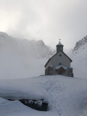 S’en est suivi une quantité de plats différents , tous transportés à dos d’homme sur les quelques kilomètres de montée pour accéder à ce refuge du CAF : Refuge de Graydon. Entre les gâteaux du pâtissier, le foie gras de JF et les tartes salées sucrées et j’en passe … Il nous aura fallu une petite sieste supplémentaire à 21h30 pour digérer le tout … et se réveiller pour le mémorable moment collectif du feu devant la chapelle de Graydon dans la neige pour minuit : la tradition veut que chacun vienne avec une bûche , une bouteille et son verre … et connaitre des chansons à partager ! Un bon moment festif partagés par tous 🙂 avec une lune quasi pleine et une météo pas très froid.