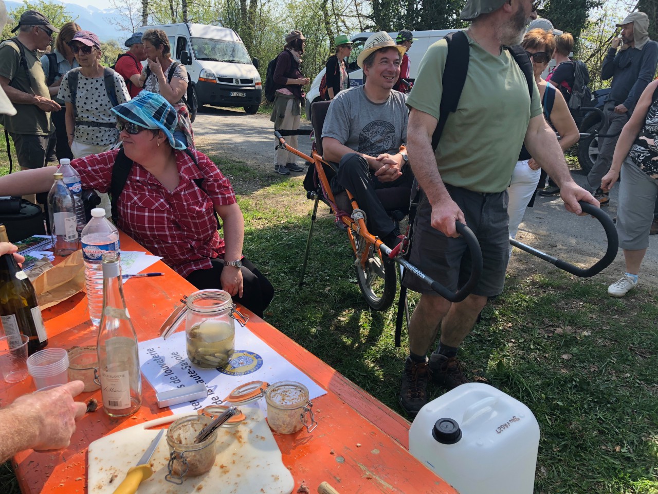 Une journée sous le signe du partage et de la nature : l’équipe d’Handicaf avec 2 joelettes de Reignier-Esery et de Thonon se sont donné RV avec l’équipe d’Handisport et partager une randonnée ensemble à la découverte de notre région et dégustation des produits locaux ( une quarantaine de personnes dans notre groupe )