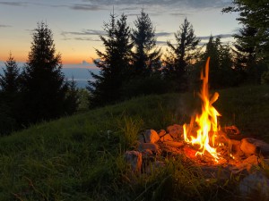 1 ou 2 heures après : 2 jeunes sont venus et nous ont demandé si ça ne nous dérangeait pas qu’ils se mettent à coté de nous pour prendre des photos du coucher du soleil : on final on a tous fait le feu et discuter avec Esteban qui est une vraie pipelette 🙂 pour l’entendre vers 22h : Papa , j’ai sommeil !!! 🙂